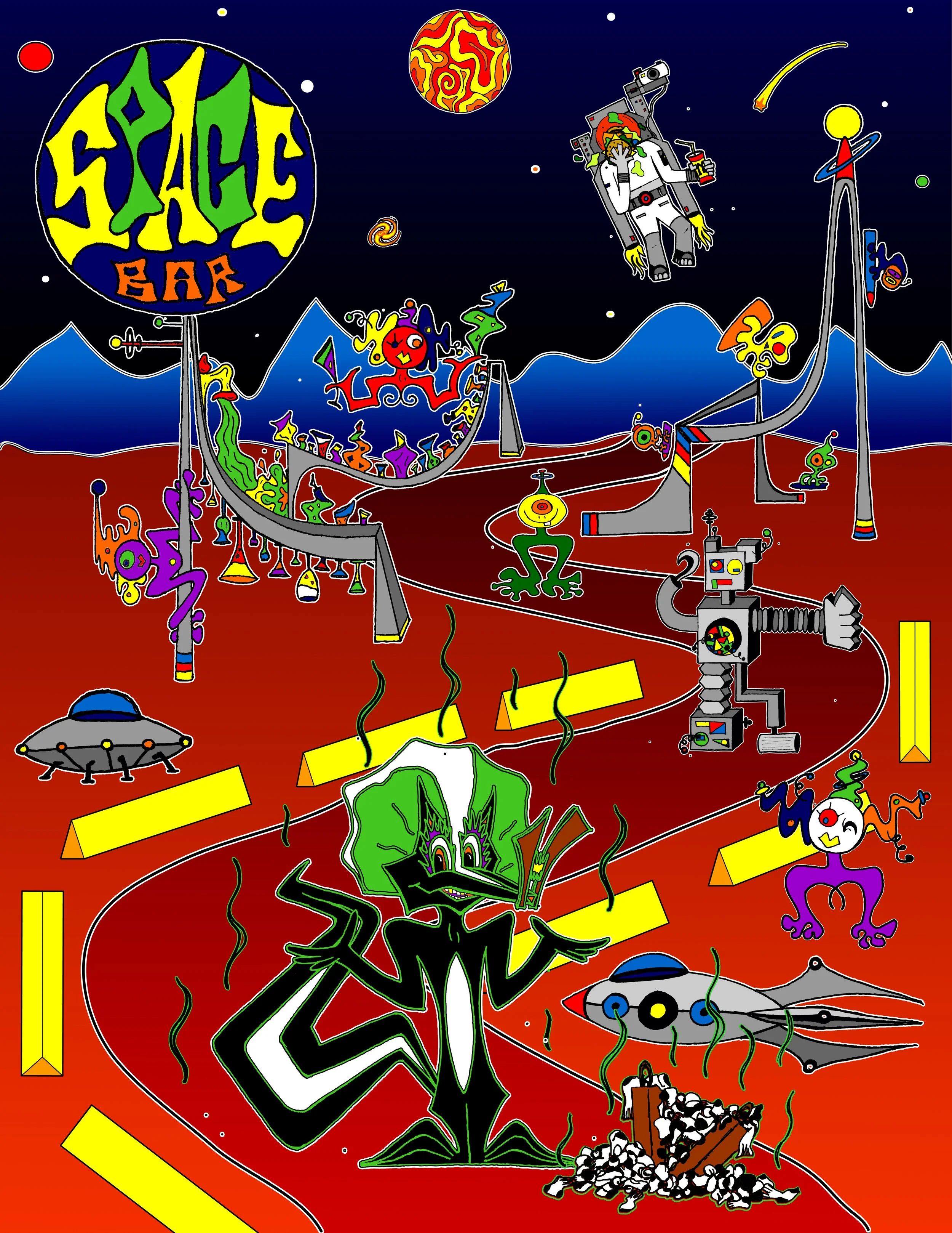 Over the years, we’ve worked on a lot of fun projects for PSB including logo variations, album cover designs, illustrations, posters, buttons, stickers & t-shirts. If you’re into space funk with some serious slap bass, you’re in for a real treat!